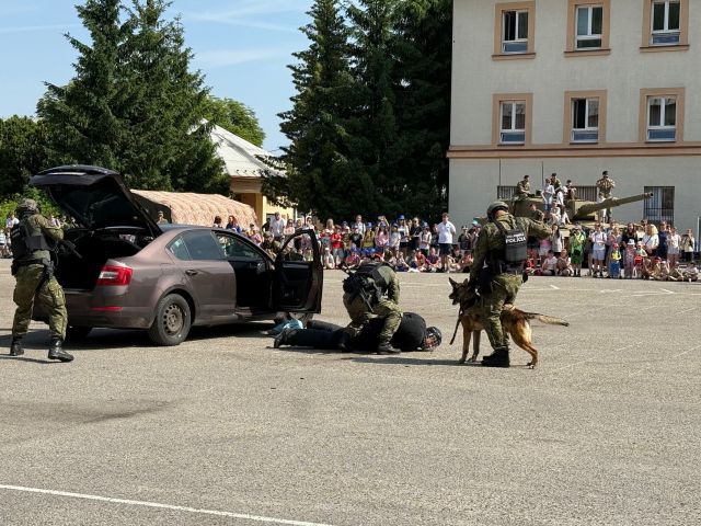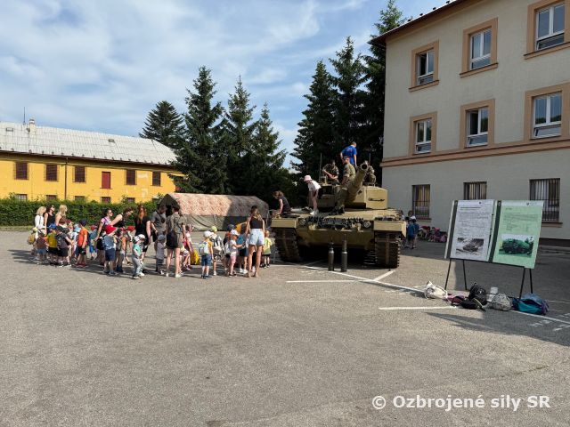 Deň detí s vojakmi Dňa 6. júna 2025 pri príležitosti osláv dňa detí otvorili kasárne SNP svoje brány pre materské a základné školy, ale aj širokú verejnosť. Menšie aj väčšie detičky v sprievode svojich rodičov, starých rodičov či pedagogických zamestnancov mali možnosť prežiť nezabudnuteľné dopoludnie s príslušníkmi Ozbrojených síl Slovenskej republiky priamo v mieste ich každodenného pôsobiska. V rámci programu mohli návštevníci vidieť statické ukážky vojenskej techniky, ako napríklad vozidlo Land Rover Defender a nákladné vozidlá Tatra 815-7 a Aktis 71. práporu podpory velenia Trenčín, bojové vozidlo pechoty z 22. mechanizovaného práporu Michalovce a tanky Leopard 2A4 a T-72 zo 14. tankového práporu Trebišov. O ďalšie statické, ale aj dynamické ukážky sa postarali príslušníci Policajného zboru Slovenskej republiky, dobrovoľní hasiči z Kolačína, EOD a v neposlednom rade kynológovia zo zásahového tímu Vojenskej polície spolu so svojimi štvornohými kolegami. Veľké poďakovanie patrí Vojenskej podpornej nadácií, z ktorej finančných prostriedkov boli zadovážené sladkosti pre deti. Deti čakalo množstvo ďalších atrakcií, ale aj súťaží o vecné ceny, ako napríklad prekážková dráha, ktorá preverila ich šikovnosť, presnosť a rýchlosť, streľba z airsoftovej zbrane, ukážka prvej pomoci, maľovanie na tvár maskovacími farbami a vyskúšali si aj nadväzovanie rádiového spojenia prostredníctvom rádiových staníc práporu. 4. pluk logistiky si pripravil ukážku mínového poľa, ktorým si mohli všetci odvážni záujemcovia prejsť. V neposlednom rade mali možnosť sa zoznámiť s výzbrojou a výstrojou, ako napríklad zbraňami, prilbami, či nosným modulárnym systémom, ktoré používajú profesionálni vojaci a vojačky v rámci výkonu svojej služby.